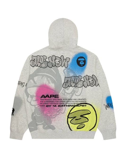 AAPE by Bathing ApeMen Moonface Paint Graffiti Hoodie in Light Grey