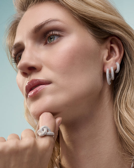 CARRARA MEDIO Rhodium Plated Zirconia Hoop Earrings