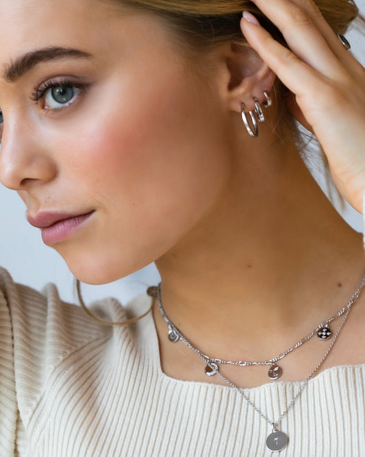 SaleLUV AJBezel Charm Drop Huggies-Silver