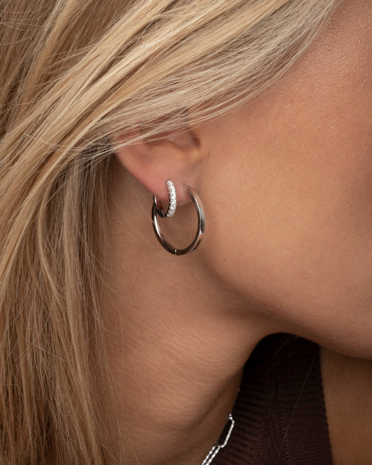 ELLERA PIANURA X-GRANDE Rhodium Plated Hoop Earrings