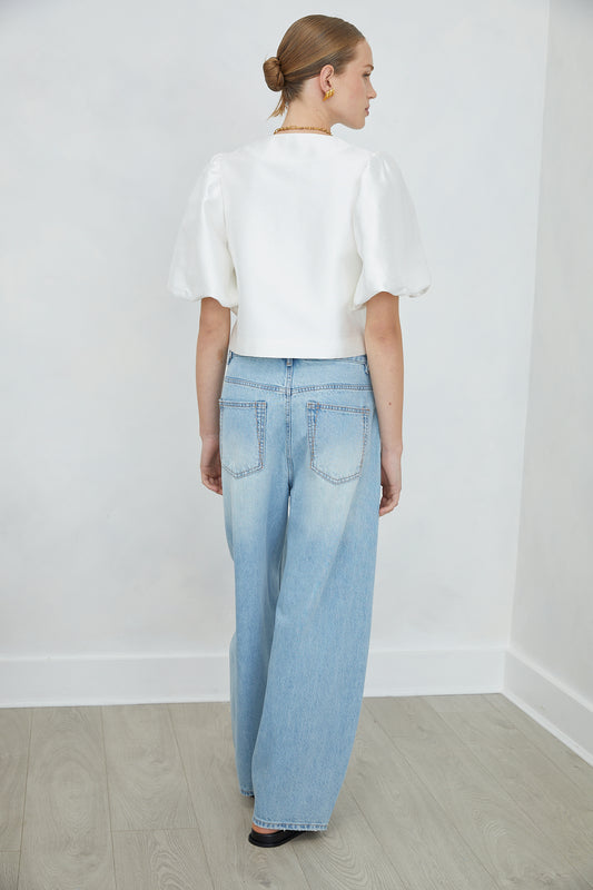 Jovonna LondonLunara White Puff Sleeve Cropped Jacket