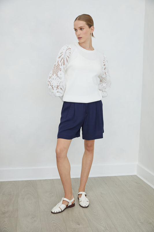 Jovonna LondonMilora White Lace Sleeve Top with Slip