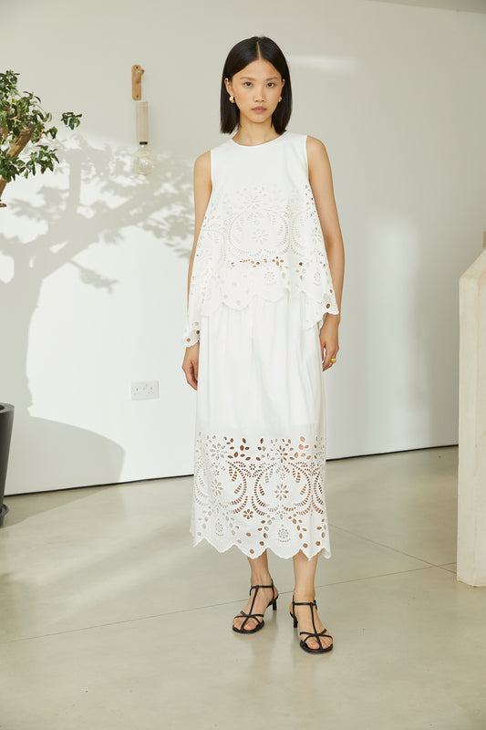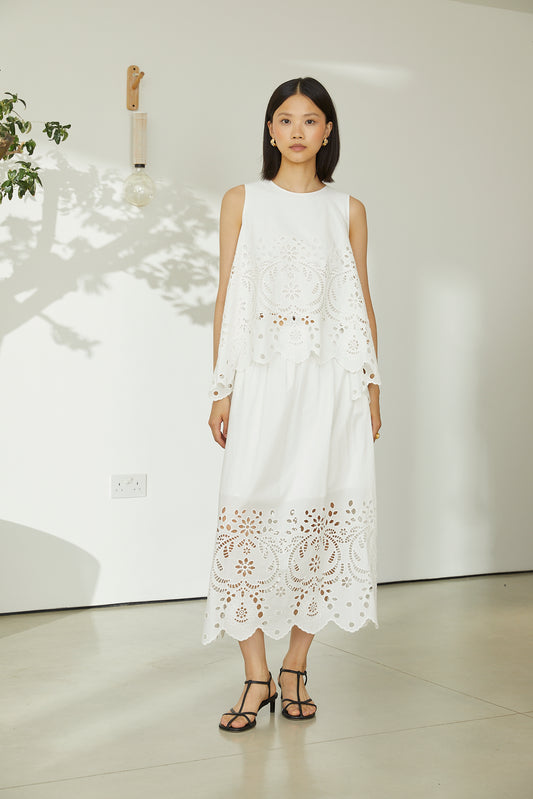 Petraia White Cotton Broderie Anglaise Sleeveless Top With Scalloped Hem