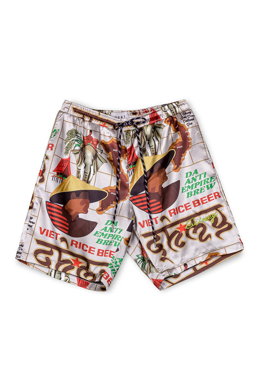 Men Viet Cong Beer Satin Short in White/Multicolor