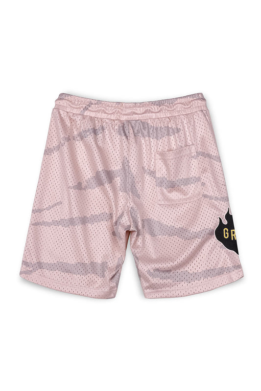 Men Cloven Tongues All Over Print Mesh Basket Shorts in Cream