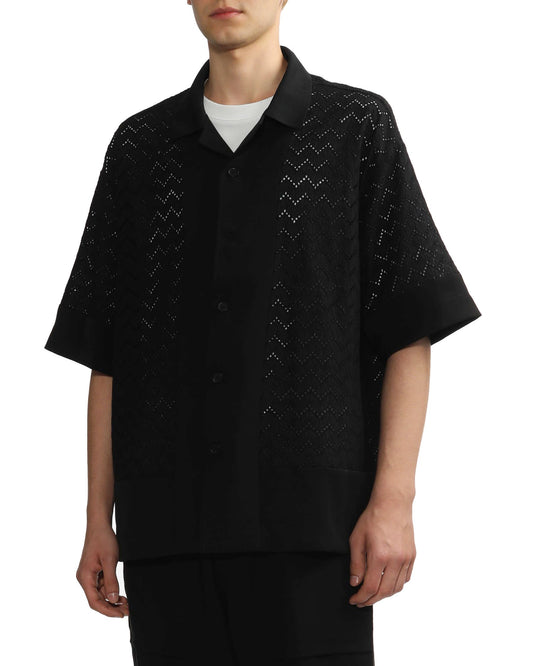 SaleFIVE CMFIVE CM Men's Eyelet Poplin Patch Shirt in Black