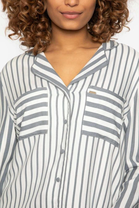 Pretty You LondonBoyfriend Stripe Pyjama Set in Grey/Ecru