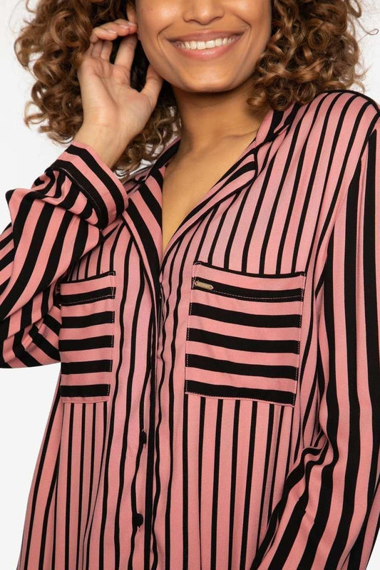 Pretty You LondonBoyfriend Stripe Pyjama Set in Terracotta/Black