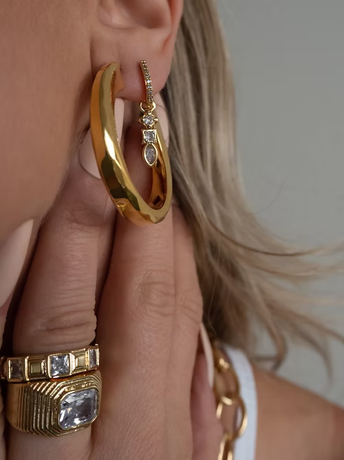 - Pair of textured, modern statement hoops