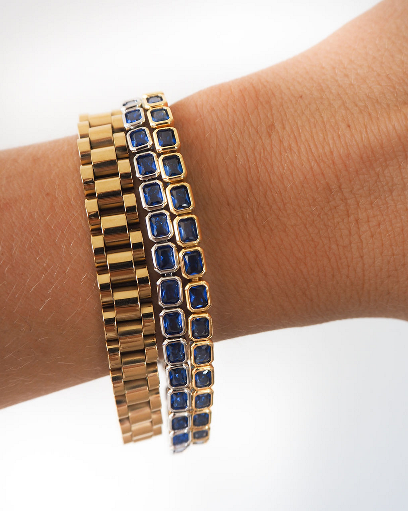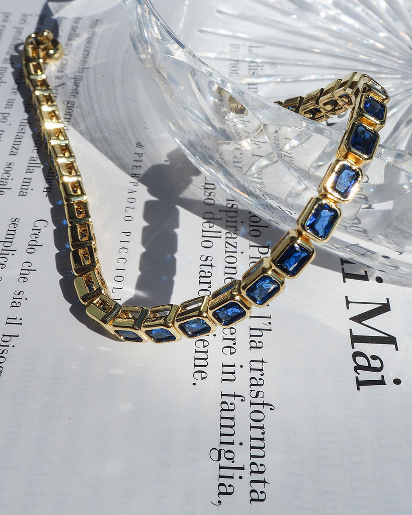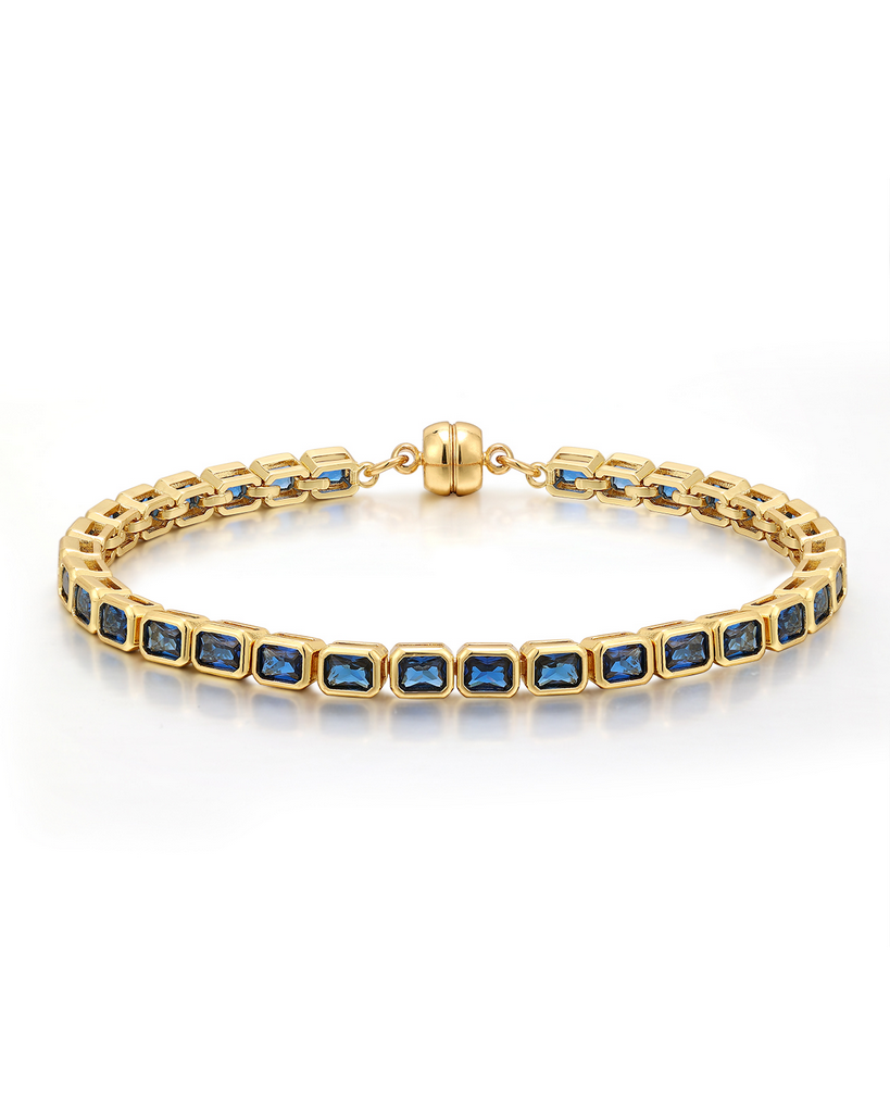 Bezel Emerald Ballier Bracelet- Blue Sapphire- Gold