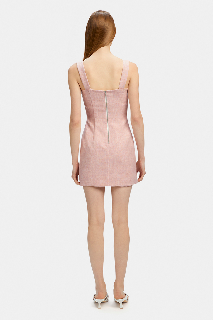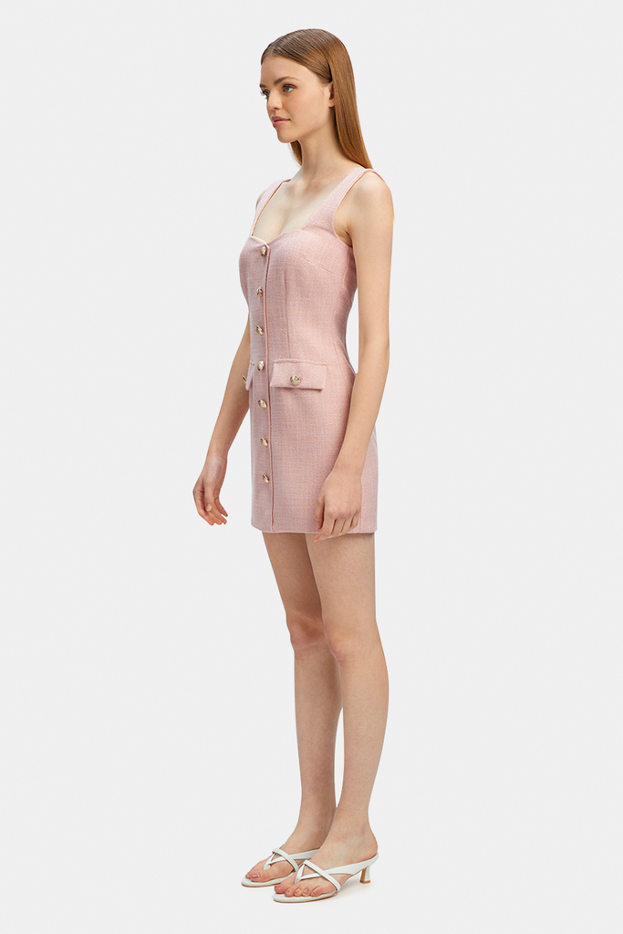 The Emilie Boucle Mini Dress is imagined in an understated pink colourway for an unapologetically feminine look. Sharp tailoring exudes the effortless elegance that is Parisian chic, while the mini hemline adds notes of flirtation to the refined style. Pair a blazer for the office or weddings.
