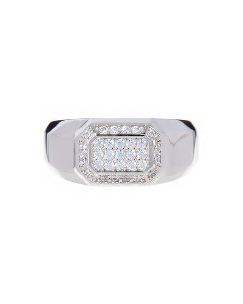 Faceted Diamond Signet Ring-Silver