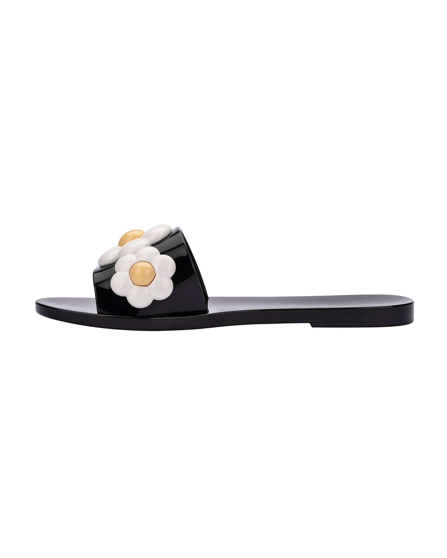Melissa Babe Spring is a flat sandal with a wide strap on the upper with maxi flowers, which makes it a nostalgic, fun model that has everything to do with sunny days. The color palette translates to the fresh and laid-back vibe of the hottest days. It's perfect to wear with dresses and skirts.