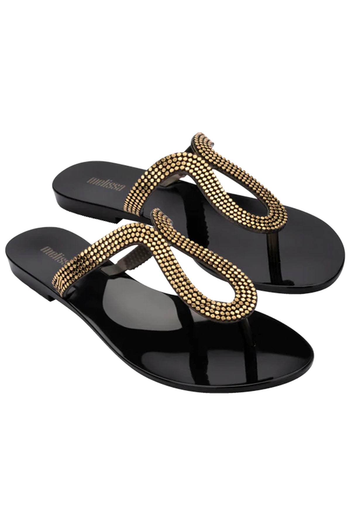 Shine brighter than ever with the new Melissa Harmonic Lana - the quintessence of versatility! The lightweight sandal offers the classic Melissa style with a touch of sophistication, thanks to the metallic finish on the straps. The stunning design, which was inspired by global fashion trends, elevates your wardrobe with lots of bling for the coming seasons.