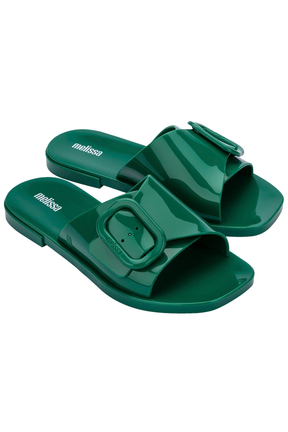 Extra-hot days call for sandals and slides. With an oversized buckle on the upper, the Lisie Slide is a super-versatile flat that pairs well with any style from casual to classy chic. This model features a square toe with two straps connected by a buckle on the upper. Made from our revolutionary Melflex® PVC plastic, you enjoy more flexibility and comfort. Plus, they’re 100% recyclable. We recommend purchasing your standard size.