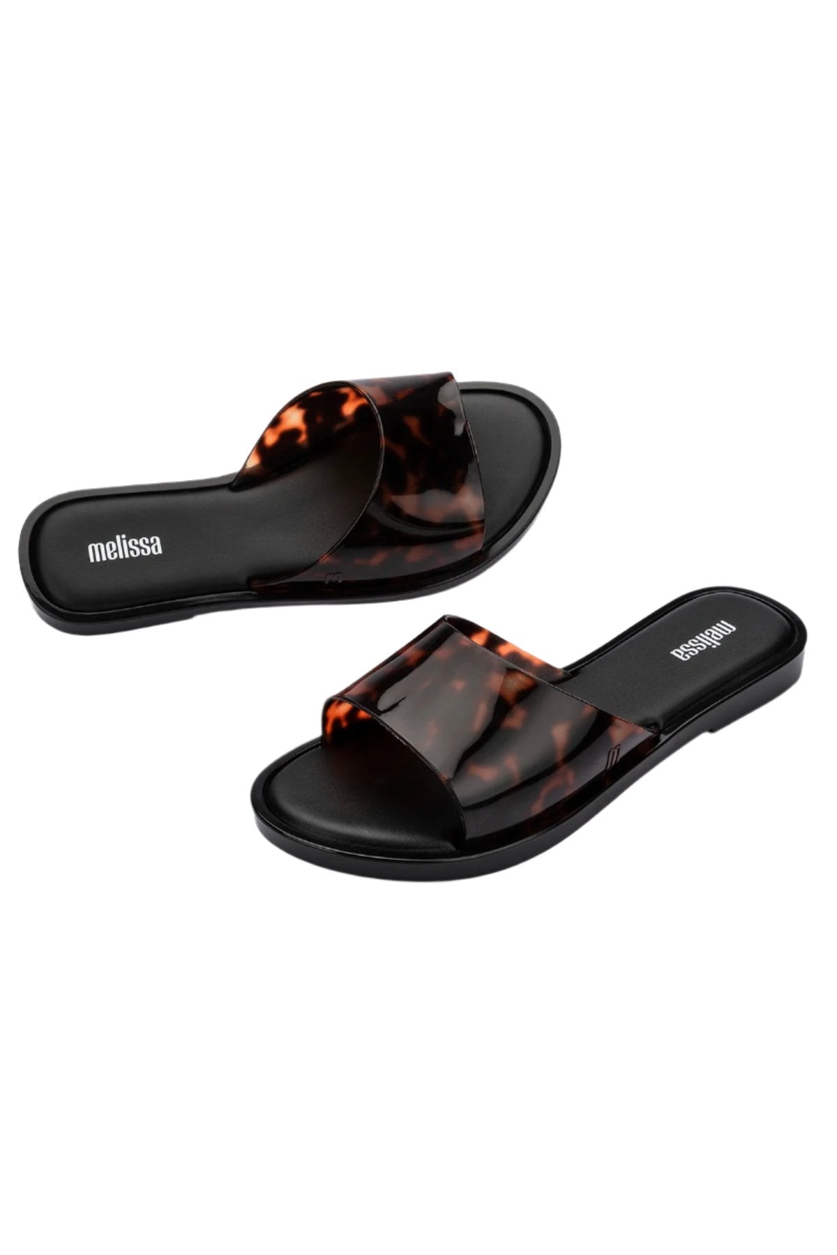 The Melissa Miranda Slide is the perfect shape for those who do not give up the minimalist style. With only a wide band on the leather and undersole, the model is an extremely versatile flat that adapts to different looks, from the most casual to the most elaborate. Highlight for the model with turtle print, a classic that never loses its charm!