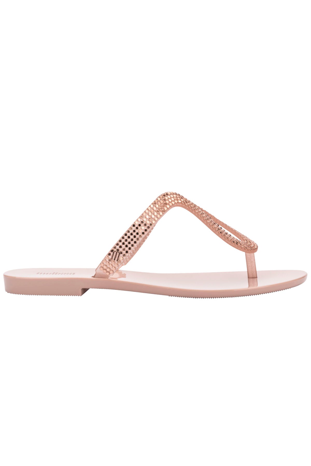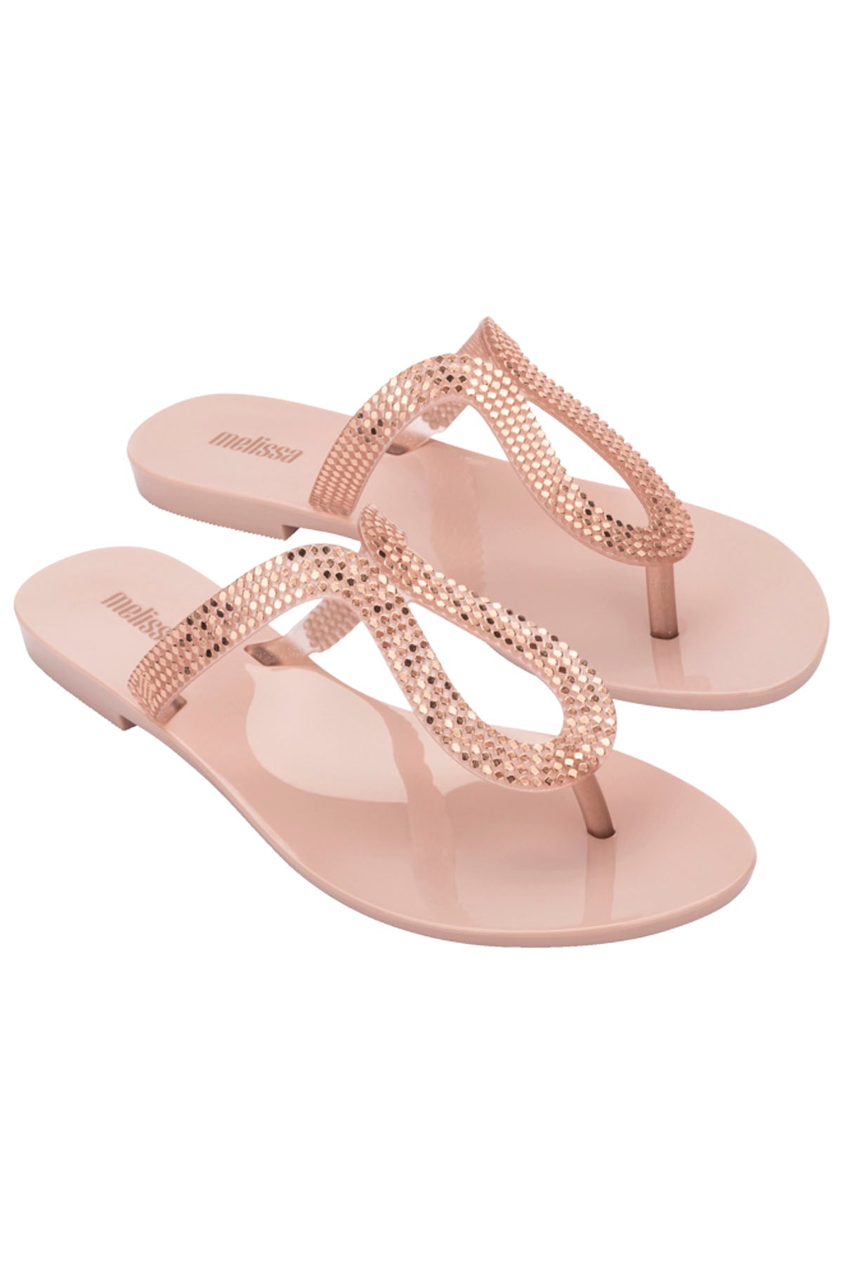 Shine brighter than ever with the new Melissa Harmonic Lana - the quintessence of versatility! The lightweight sandal offers the classic Melissa style with a touch of sophistication, thanks to the metallic finish on the straps. The stunning design, which was inspired by global fashion trends, elevates your wardrobe with lots of bling for the coming seasons.