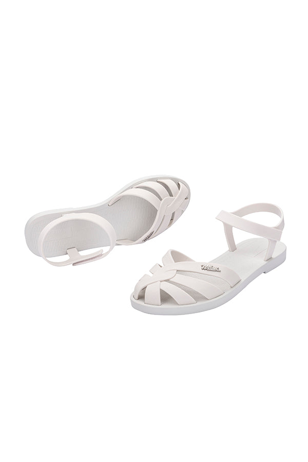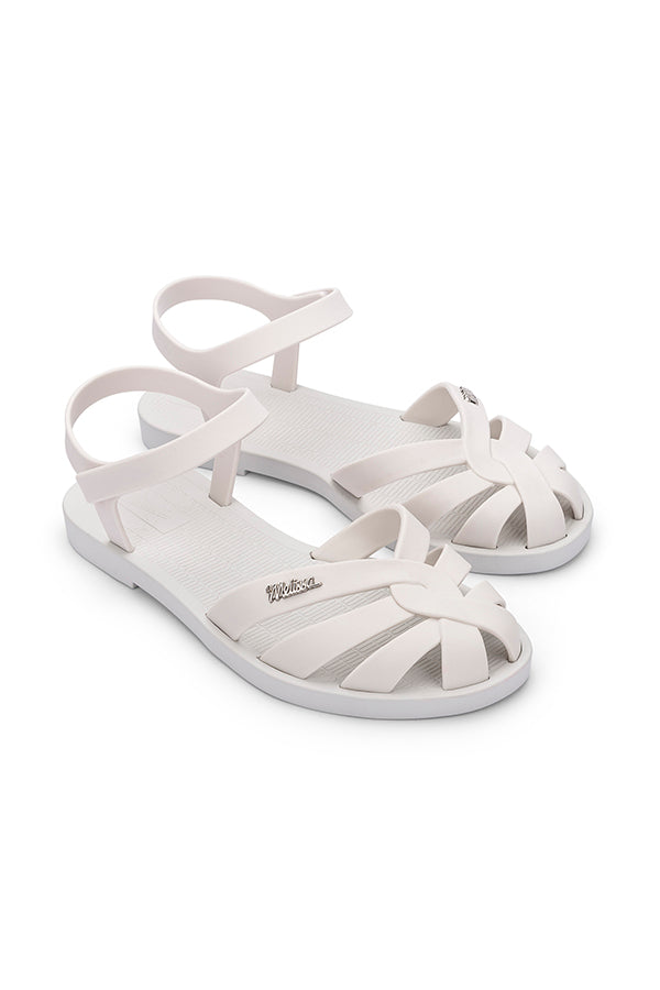 A new addition to the Melissa Sun Collection, these sandals are made for the dainty sunshine girl. Featuring delicate intertwining straps on the vamp, complete with the iconic Melissa metal logo pin on the outer sides. As comfy as they are convenient, this fuss-free pair comes with ankle straps and velcro closure.