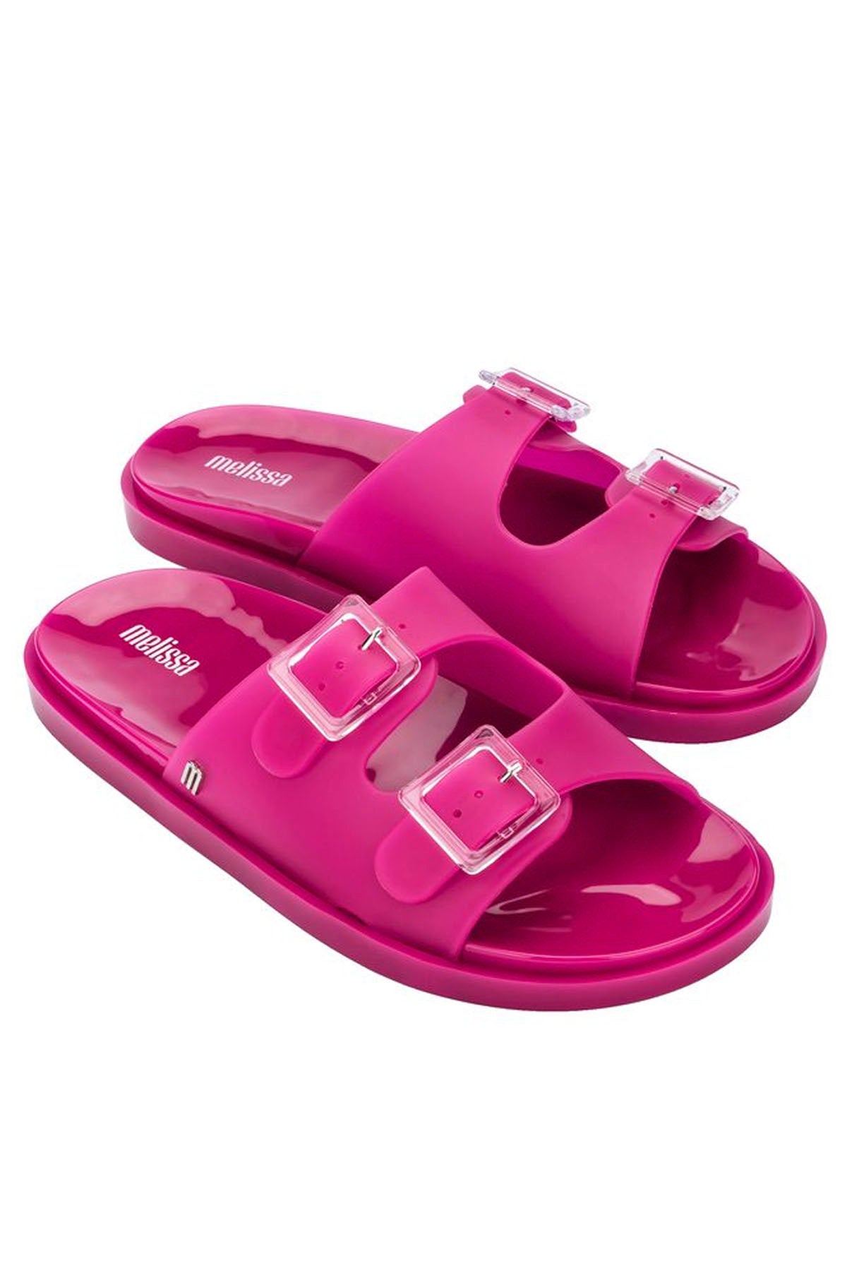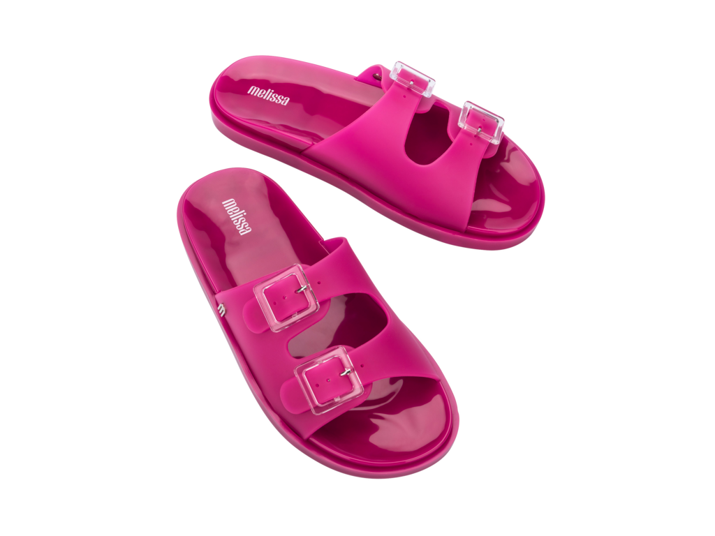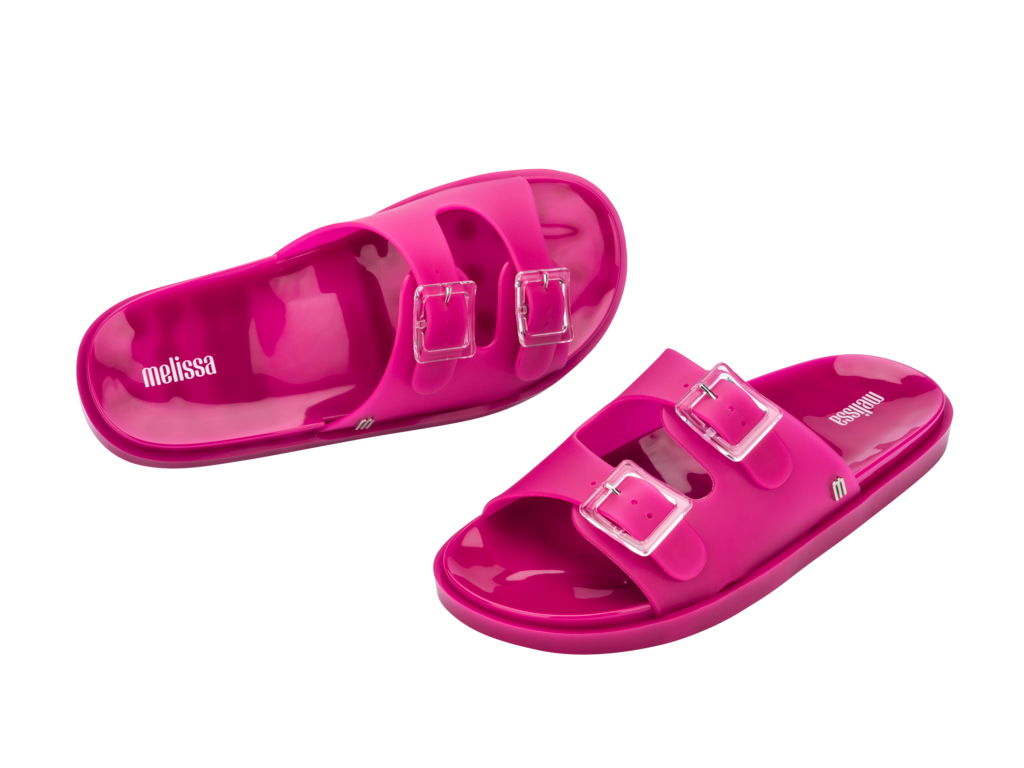 Comfy and fashionable, Melissa Wide is inspired by the super-classic shape that viralized in the 90s. The slide with buckles is one of the most famous style through European summer, thanks to its simplicity, practicability, and versatility.