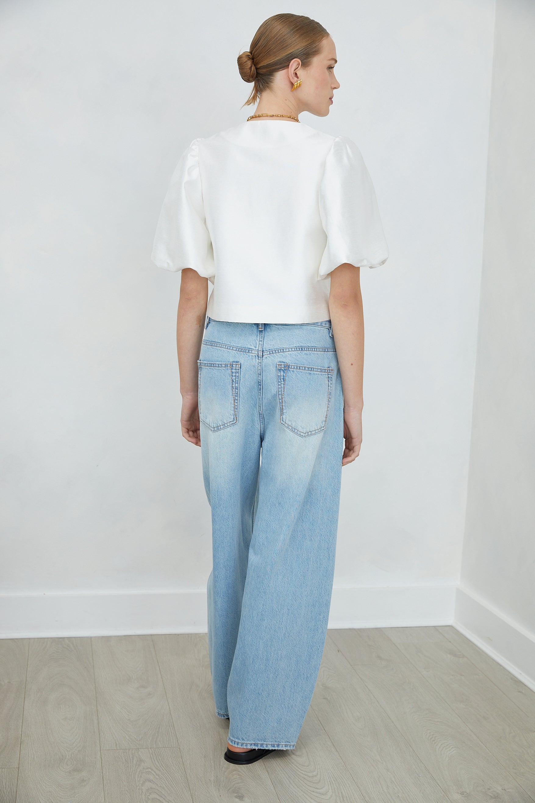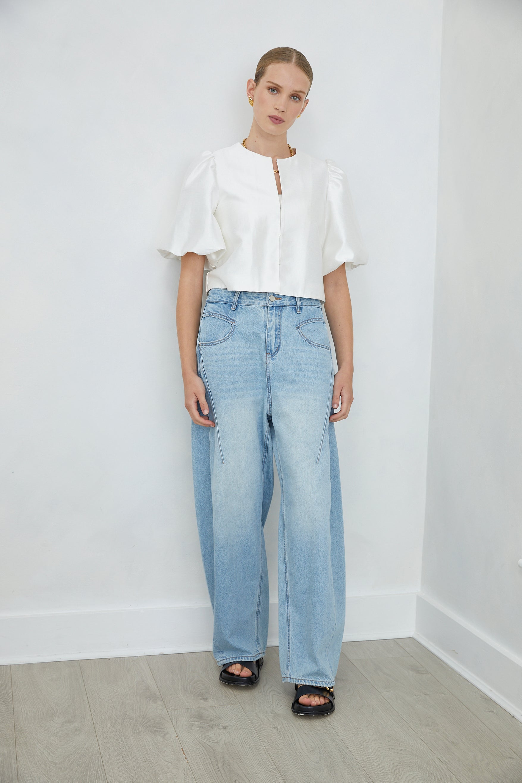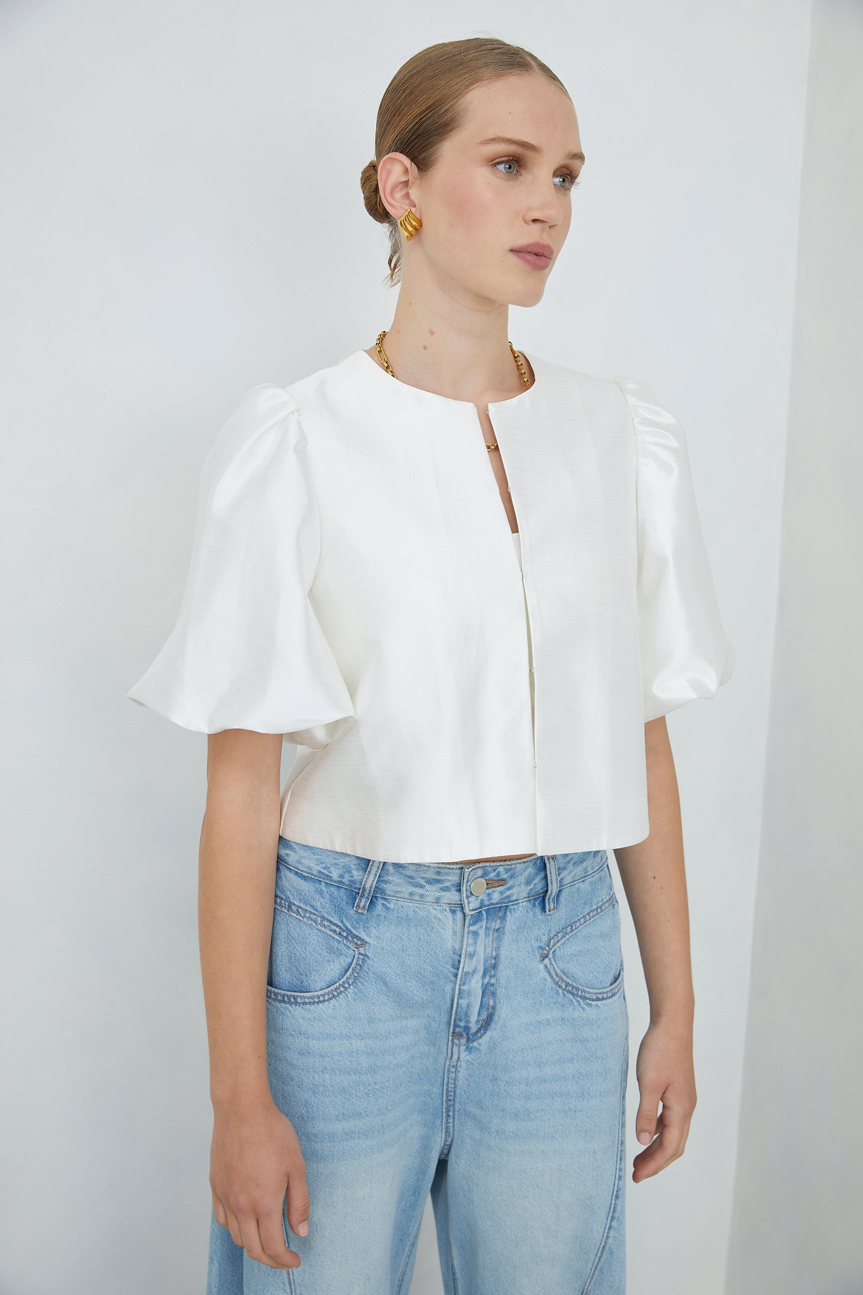 Lunara White Puff Sleeve Cropped Jacket
