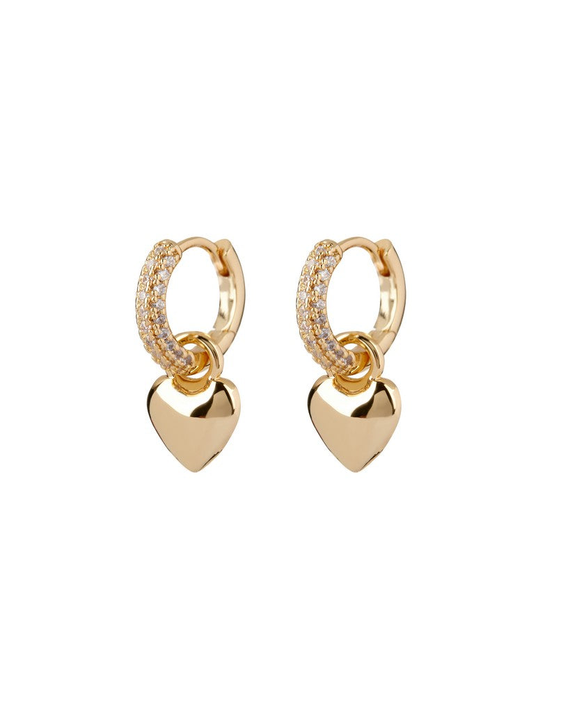 - Pair of pave covered huggies with a metal puffy heart charm