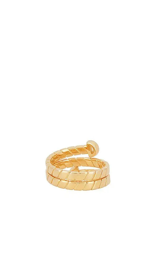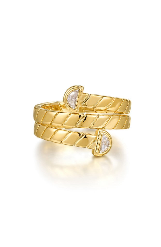 - Snakeskin textured, metal wrap ring with two half-circle CZ stones on the ends